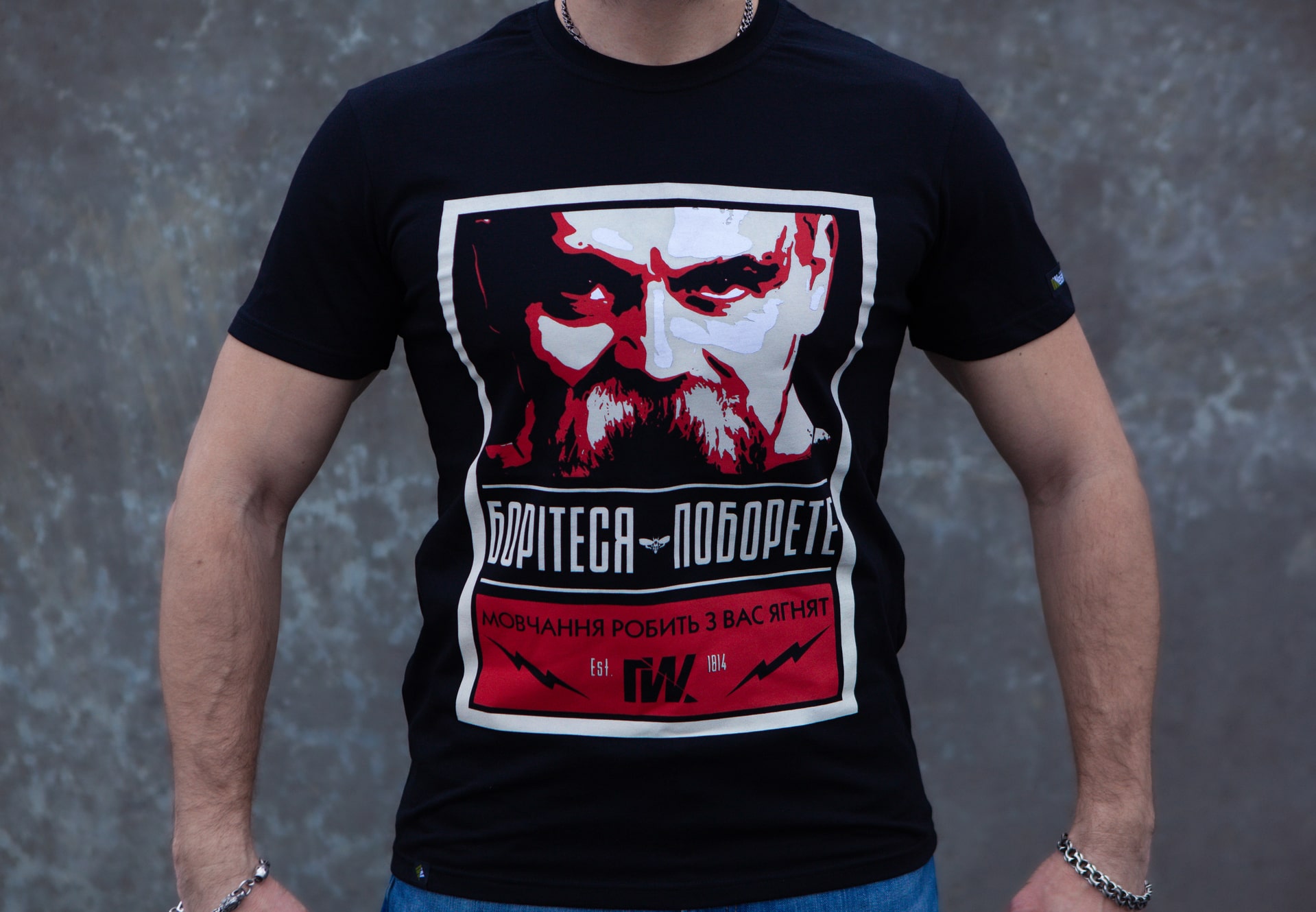 Натхненна образом Тараса Шевченка, футболка «Борітеся — поборете» втілює ідеї боротьби та перемоги, які не підвладні часу і залишаються актуальними донині. Ключовий елемент дизайну — портрет Шевченка, виконаний у стилістиці вуличного арту, що надає образу динаміки та бунтарського духу.