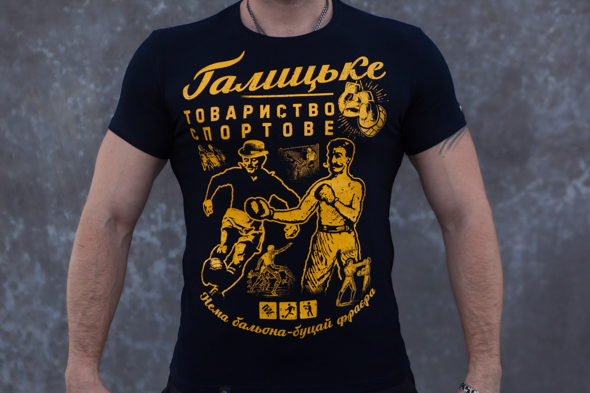 Дизайн футболки присвячений витокам спорту в Галичині — території, де фізична культура природно зрослася з ідеєю національного відродження.