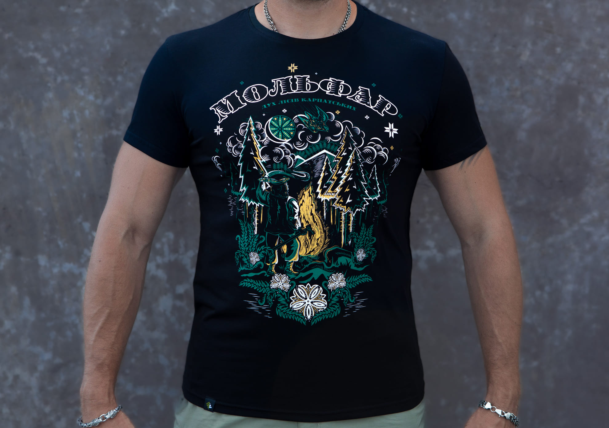 Футболка «Мольфар» присвячена «непростим» людям Карпат — носіям потаємних знань і надприродних сил.