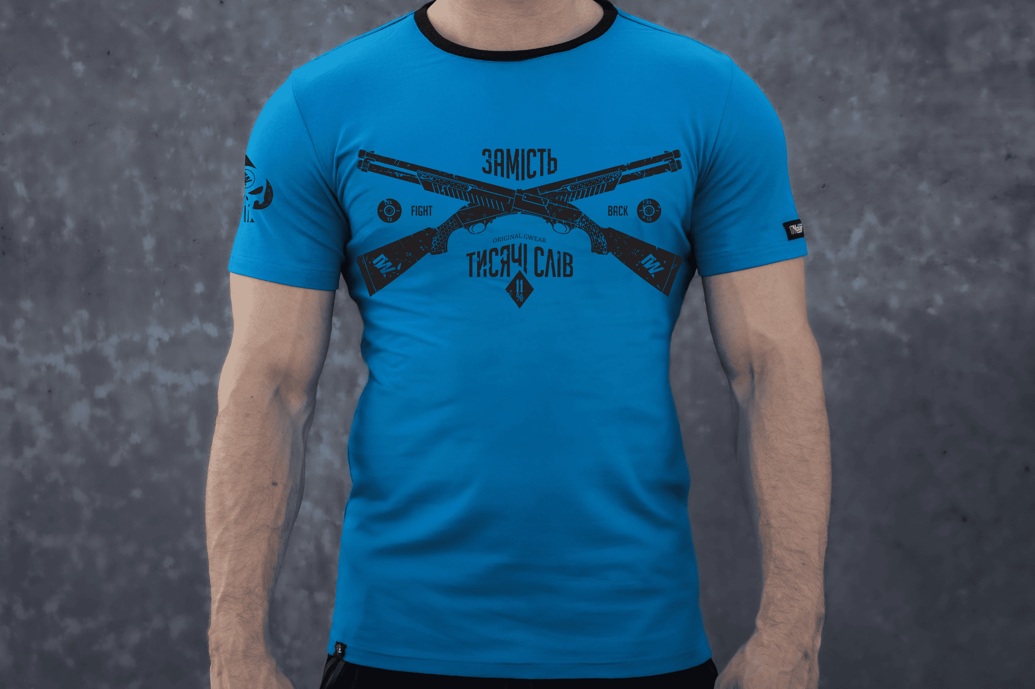 Кожна деталь дизайну говорить про твою готовність дати відсіч: рушниці на грудях — це маніфест сили та волі, а череп Панішера на спині та рукаві — символ помсти та невідворотного покарання, відомий серед військових по всьому світу. Гасло «Fight back» підкреслює твою рішучість діяти без сумнівів і вагань.